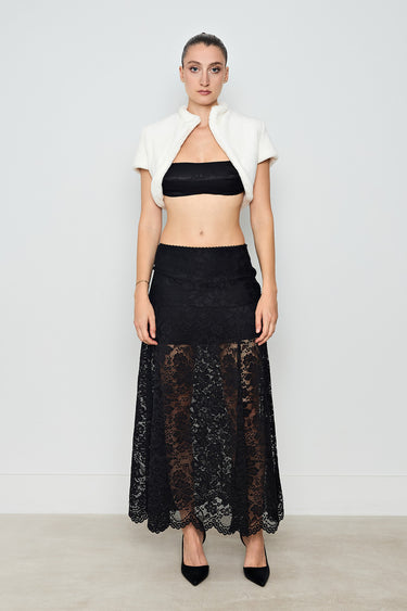 Crafted from elastic lace that moves gracefully with the body, a bold yet feminine piece blending dark allure with timeless elegance.